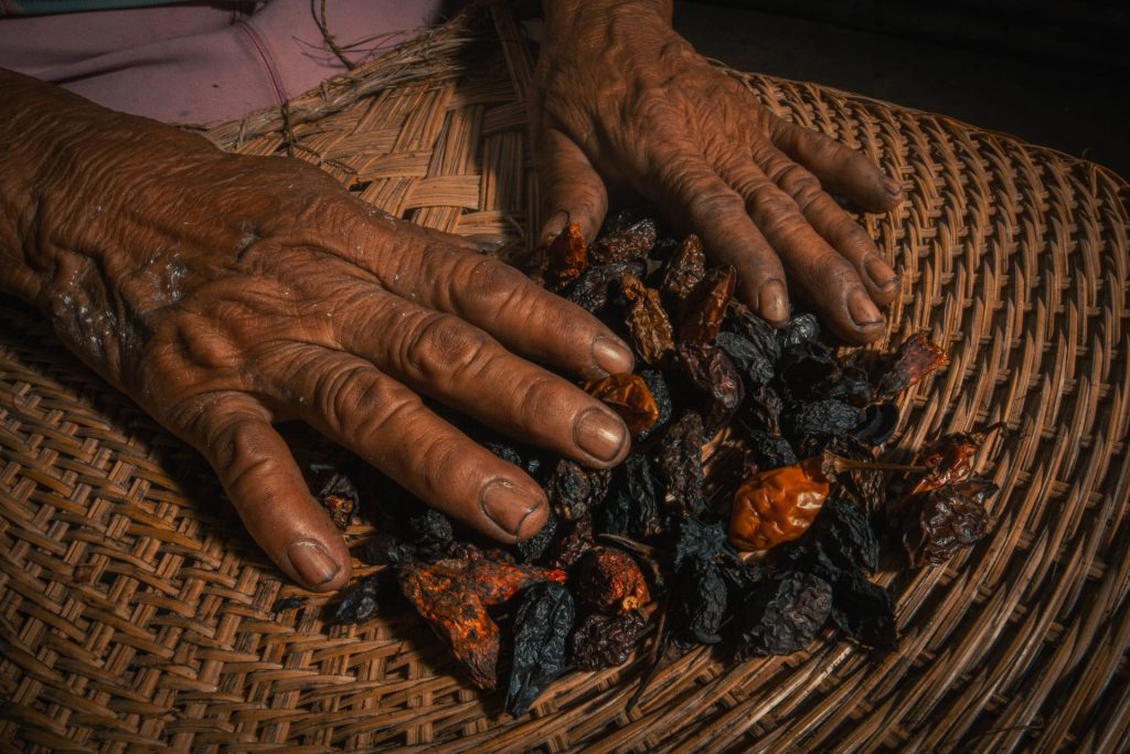 Mujeres del Macroterritorio de Jaguares del Yuruparí en sus labores de cuidado y manejo de la chagra. Foto: Juan Gabriel Soler | Gaia Amazonas.Preparación del ají, alimento muy consumido en los pueblos amazónicos. Foto: Felipe Rodríguez | Gaia Amazonas.