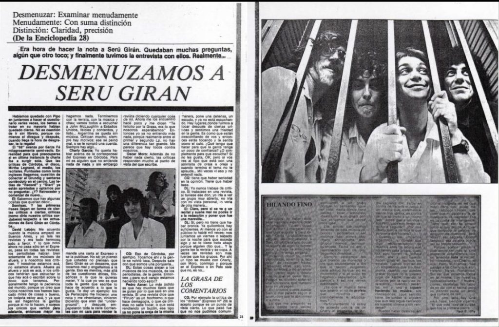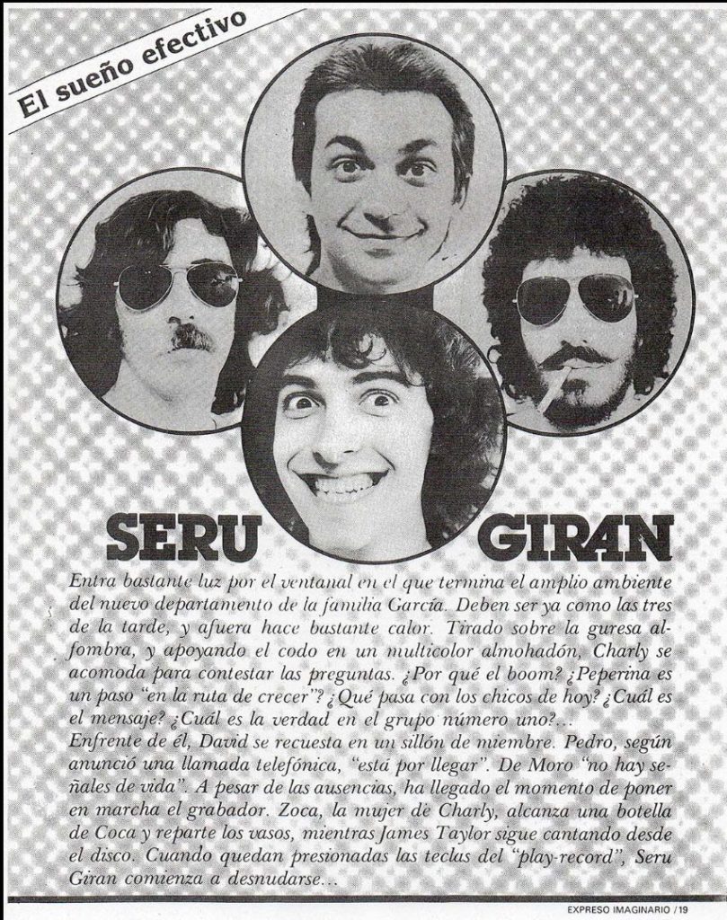 ¿Por qué una banda crearía un nombre a partir de palabras inexistentes, una dupla sin aparente significado? Serú Girán. ¿Qué quería decir eso? En palabras de Charly: “Teníamos un lindo tema sin letra. Entonces dijimos: ‘Hagamos una letra hermosa en el sentido de escucharla, como si fuera un instrumento’”. Se trataba de una declaración de principios estéticos hecha a partir de palabras inventadas, que más tarde ocuparían un lugar clave en la poética de Serú: cosmigonón / gisofanía / serú girán / seminare / paralía / narcisolón / solidaría / eiti leda / lirán divino. Esa ruptura del lenguaje anunciaba lo que más adelante sería fundamental: las variaciones poéticas y las disrupciones tanto musicales como lingüísticas cuando se nace para mirar lo que pocos quieren ver.