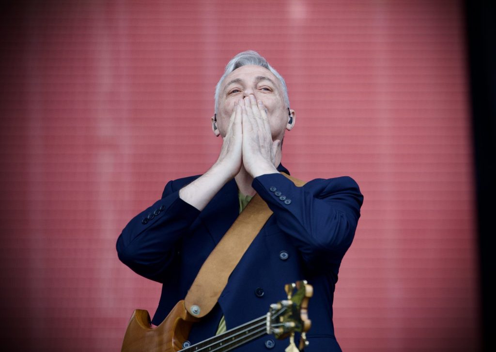 El cielo permanece gris y Lebón retoma con Un mundo agradable (Serú 92’, 1992). Parte de la camada de canciones optimistas del corazón generoso de Lebón con las que se despidieron de los estudios y los escenarios. Durante el solo nos tomamos una selfie, que captura algo que nunca más vamos a volver a vivir. Y empieza el funk, el rock, el himno de una generación: la canción de Serú que nunca fue grabada en estudio y cuyo registro solo aparece en el álbum en vivo que lleva el mismo nombre (No llores por mí, Argentina (1982)). Fue una respuesta sarcástica al célebre Don’t Cry for Me Argentina, la canción compuesta por Andrew Lloyd Webber y Tim Rice para el musical Evita (1978). “¡Entre lujurias y represión bailaste los discos de moda!”, salta todo el escenario principal. Una bandera de Palestina brilla entre el público. Se cumple una hora de un concierto para el que no estábamos preparadas. O para el que nos veníamos preparando desde hace décadas.