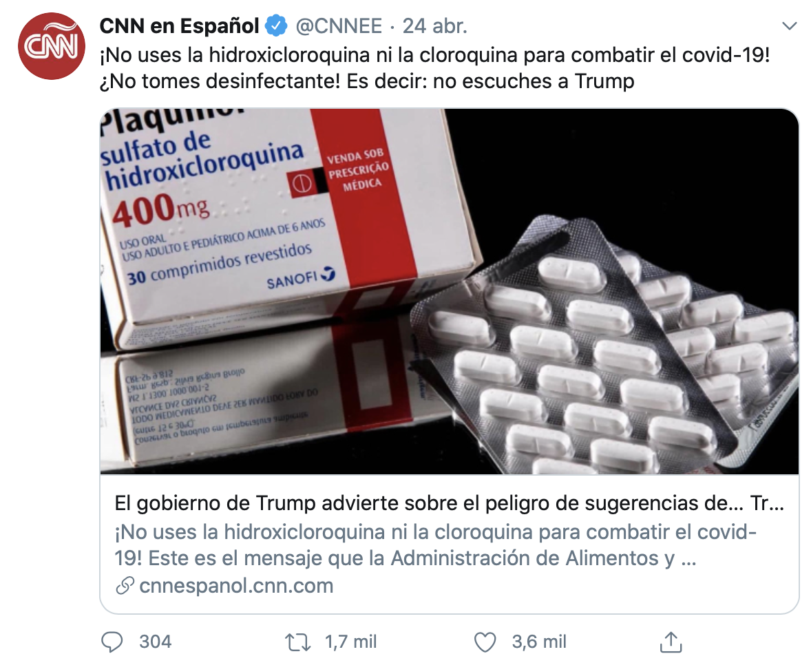 Aunque la mayoría de información relacionada con los medicamentos monitoreados y publicada en las páginas y grupos públicos de Facebook Colombia durante los meses de marzo, abril y mayo no es del todo falsa, sí suele ser engañosa. Incluso los medios tradicionales, que son las fuentes que generan más interacciones en Facebook, tienden a exagerar los resultados positivos de estudios preliminares sin indicar, por lo menos en el preview de Facebook, que en todos los casos la evidencia científica sigue siendo a lo sumo preliminar y claramente insuficiente.