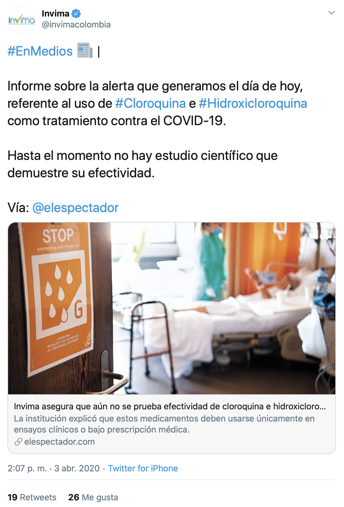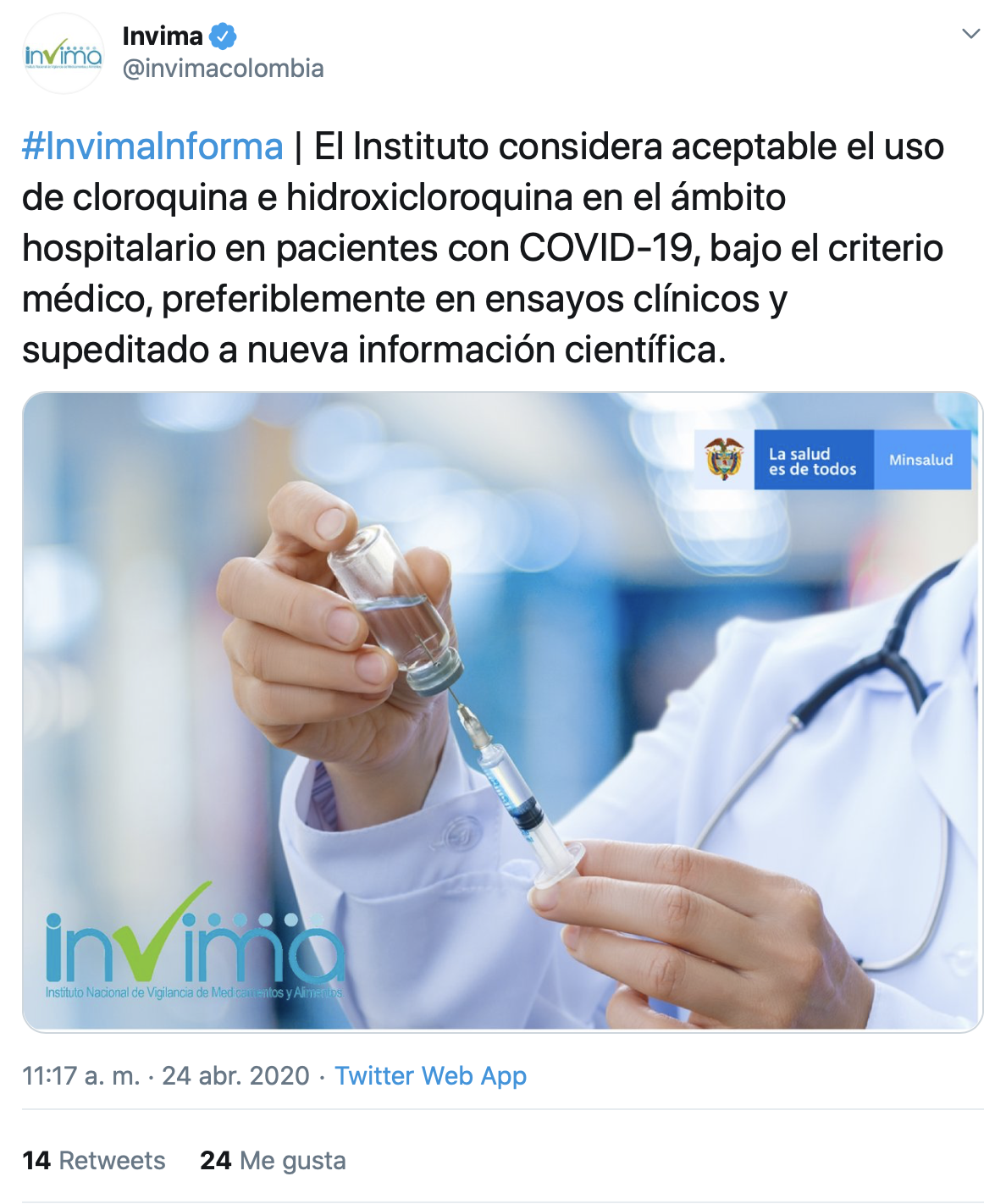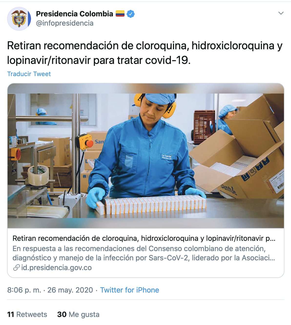 La desinformación en internet se mueve rápido y en tiempos de coronavirus, los medicamento se han vuelto un tema recurrente. En este proceso no sólo juegan las redes sociales. También los medios tradicionales y hasta las autoridades colombianas que guardan silencio.