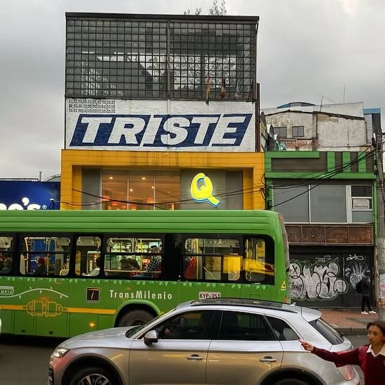 Por eso esta bienal fue una excepción. Me encontré con la mejor experiencia de mediación que he tenido. Por primera vez, sentí que se les otorgaba a los mediadores la libertad y la confianza de mediar de verdad, de construir lecturas propias desde su relación con la ciudad, desde sus historias. Gracias a ellos entendí por qué Ensayos de la felicidad de Alfredo Jaar es la obra más potente de la bienal: un espejo de la tristeza colectiva bogotana. Descubrí el valor simbólico de reencontrar la escultura de Galán, una estatua chistosa, casi estilo Naruto, escondida durante años en el Palacio de San Francisco. Encontré sentido en el contraste y la catarsis del TRISTE de Sofía Reyes Guevara, que muchos veíamos sobre el Qbano de Lourdes sin entender por qué debíamos “abrazar la desesperanza”.