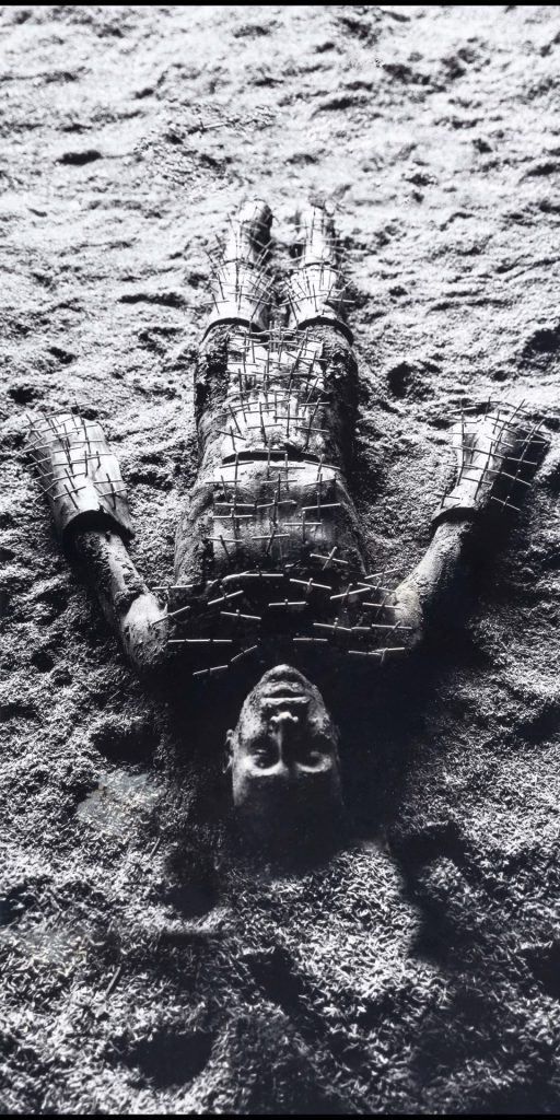 Yo trabajo mucho así. Llevé muchos elementos que pertenecen a la cultura material de todas mis obras. Con esta obsesión mía por los objetos y la relación con el cuerpo, llevé máscaras, bastones, fibras, una cunita, en fin, elementos con los que yo venía trabajando y que pensé podían tener alguna relación o que podíamos encontrarle algunas posibilidades. Pero casi todo fue improvisado in situ. Llegábamos, mirábamos, sentíamos el lugar, y el cuerpo empezaba a responder.