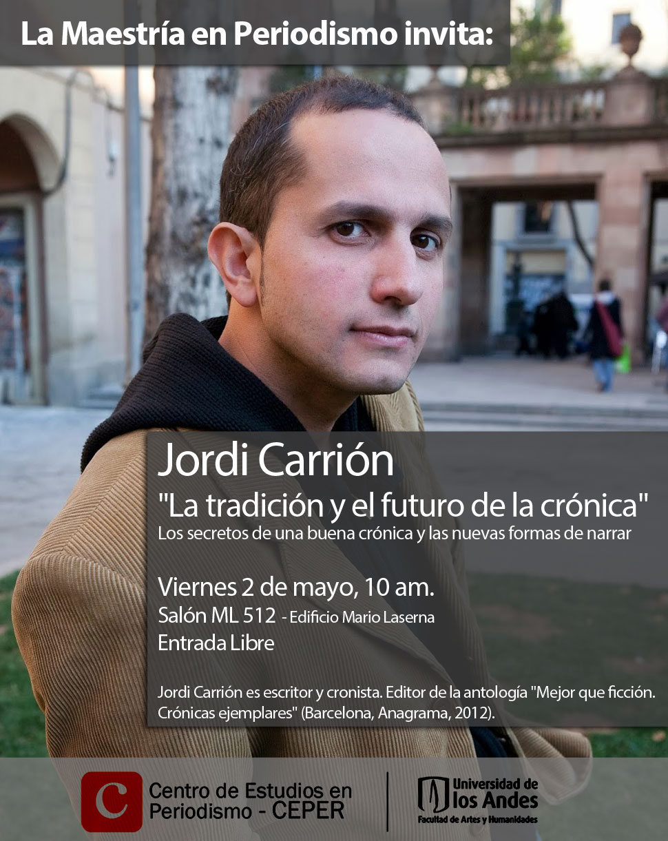 El Centro de Estudios de Periodismo de la Universidad de los Andes invita a las conferencias de la Maestría en Periodismo con los periodistas españoles Jordi Carrión y Xavier Giró. Entrada libre.