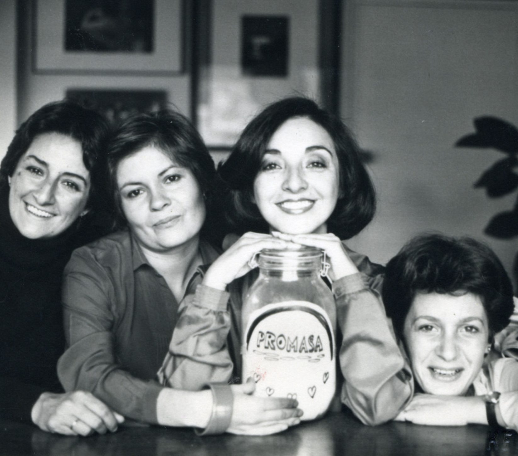 Aseneth Velásquez, María Mercedes Carranza, Pilar Tafur, Carmen Barvo en 1983. Cortesía: BADAC – Fondo María Mercedes Carranza.