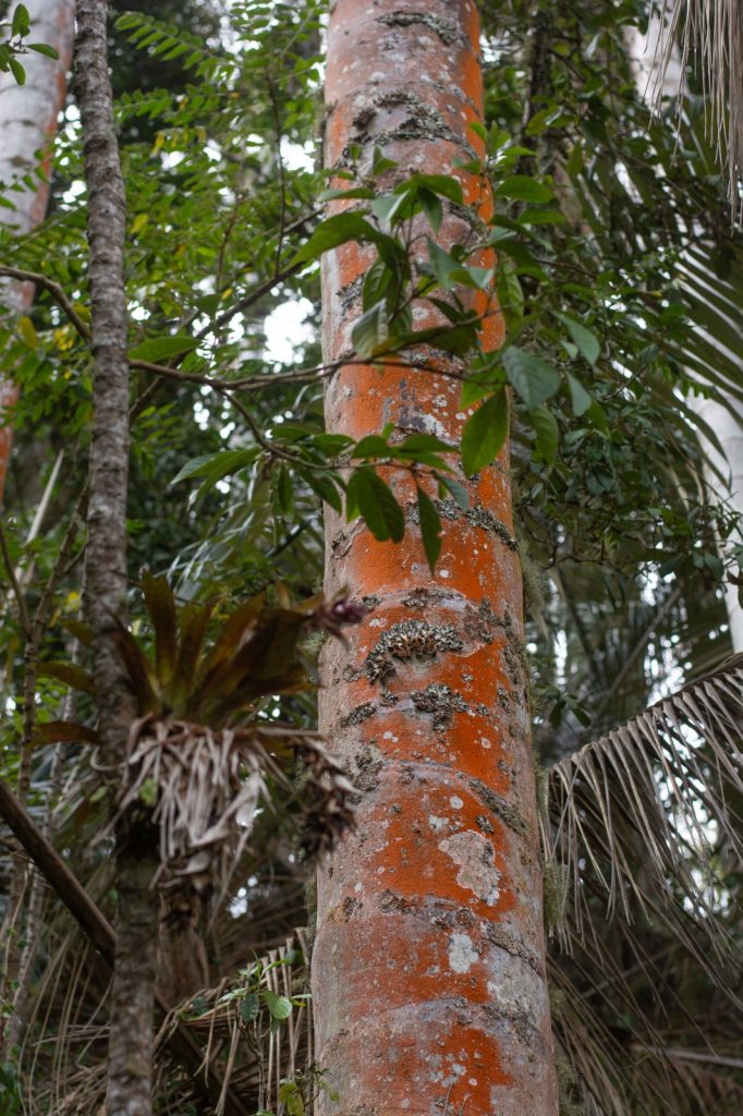 Otro aspecto en el que la palma tiene influencia es en la configuración misma del bosque, porque son plantas muy altas, de 35 metros para arriba, con hojas que pesan hasta 12 kilos. Una hoja así de pesada, al caer desde tan alto, genera un impacto importante: puede determinar la supervivencia de las plántulas de otras especies que están en los alrededores. La caída de una hoja de palma acaba con la vida de la plántula de un árbol. Al caer, impacta el sitio sobre el cual crecen líquenes, musgos, bromelias o aráceas. La palma, además, es el lugar de anidación de algunas especies de loros.