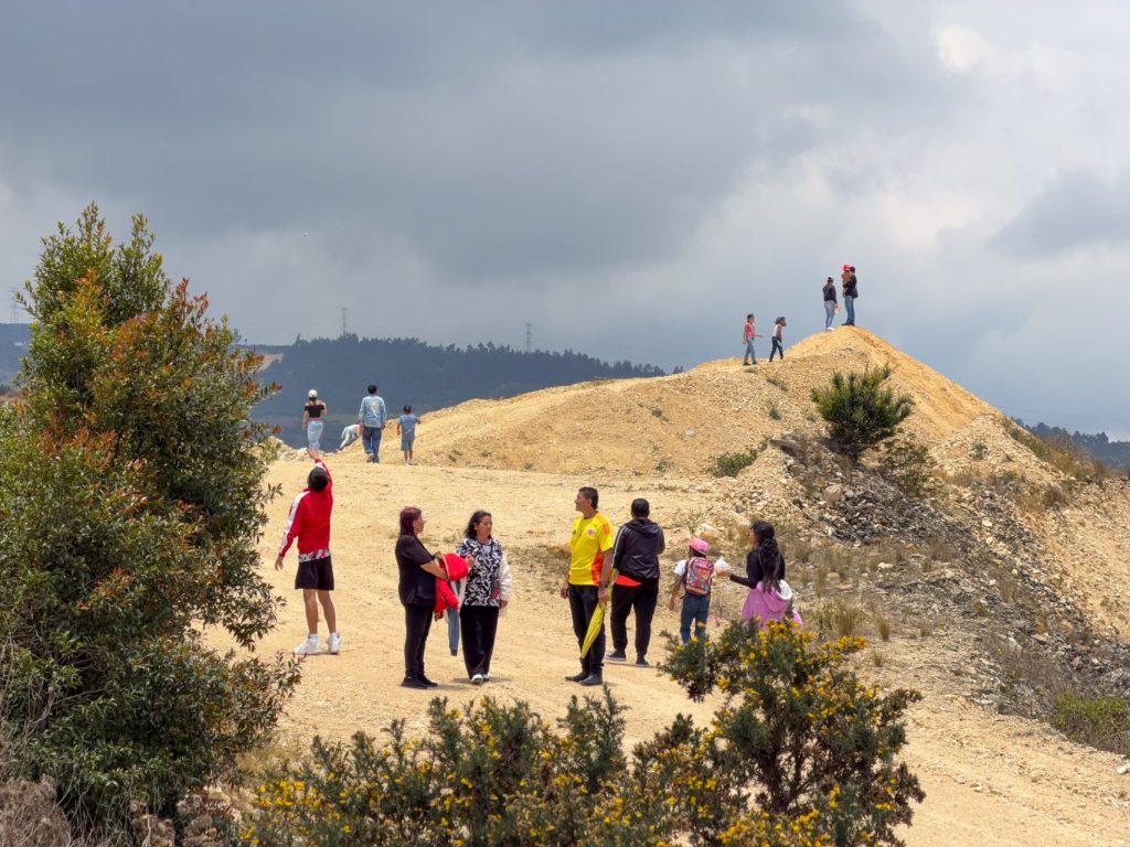 A las tres horas aparecen los Cerros Orientales en el horizonte. El grupo de líderes ambientales Red de amigos y amigas de Cerro Seco, quienes han luchado por la conservación de este territorio, por su importancia simbólica y ambiental, acompañan la procesión con banderas blancas.
